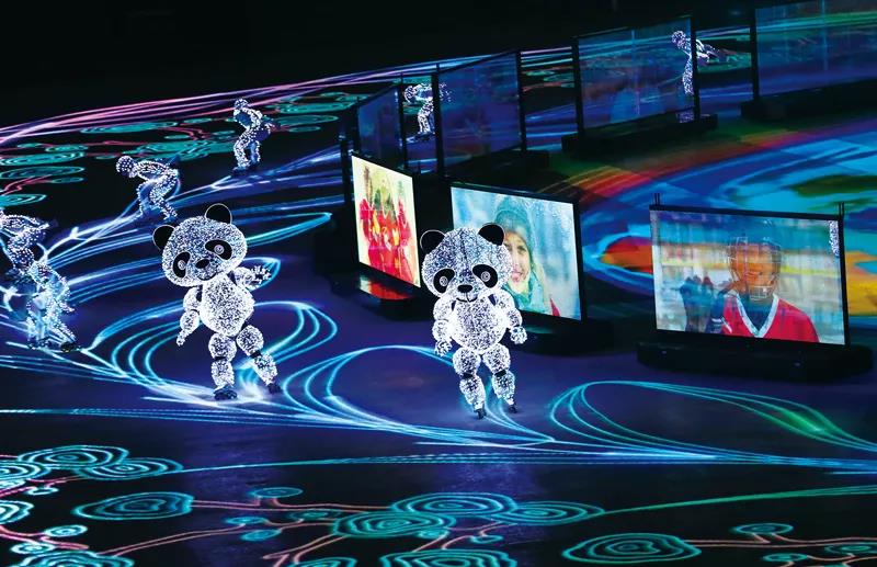 2018年2月25日,在平昌冬奧會閉幕式“北京8分鐘”表演中,由沈陽新松機器人自動化股份有限公司研發(fā)的智能移動機器人與輪滑演員進行表演。 新華社記者 ...